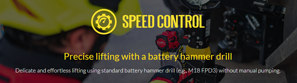 - Thanks to its sensitive control via a battery-powered screwdriver, it lifts loads of up to 105 kN in a controlled and energy-saving manner at the touch of a button.